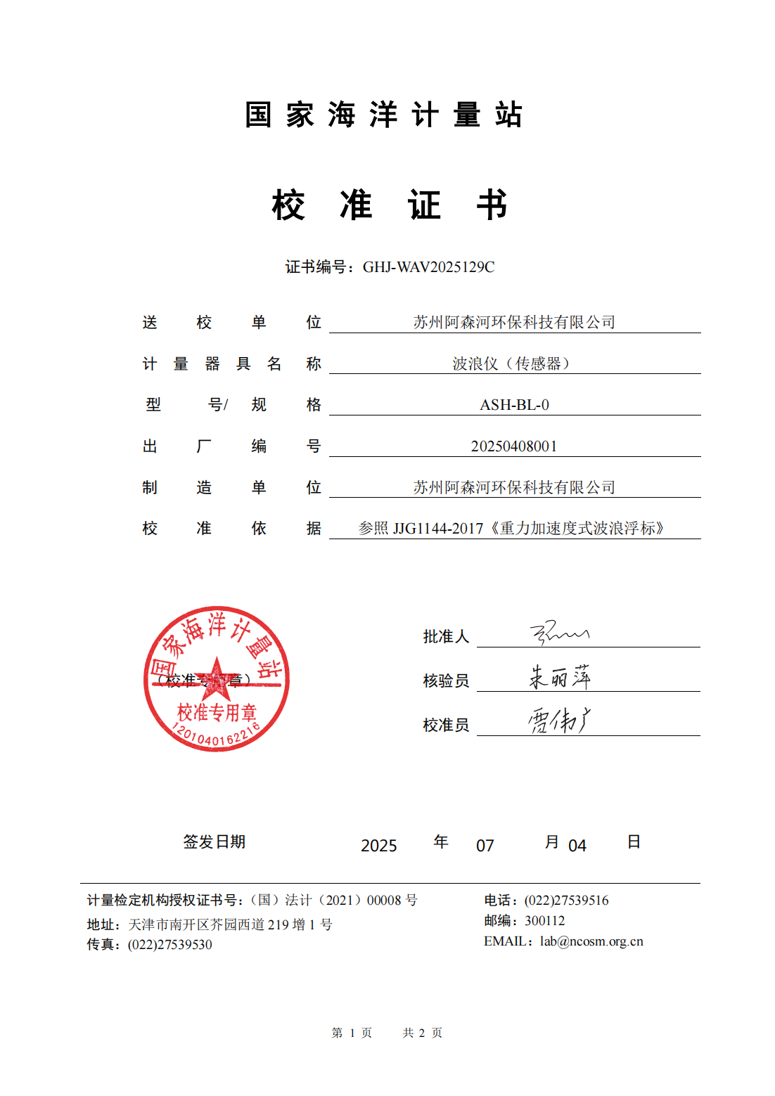 二、国家海洋计量站标定证书